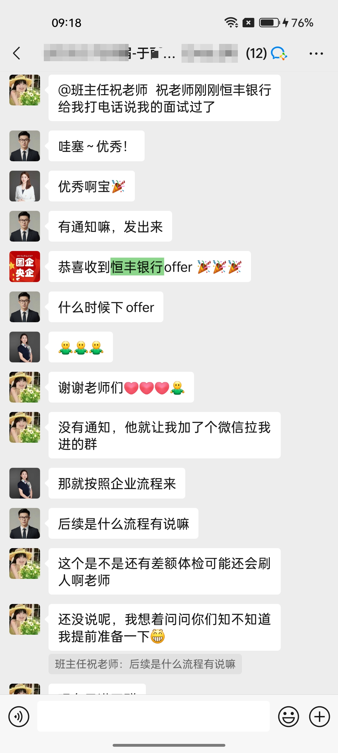 于同学恒丰银行offer